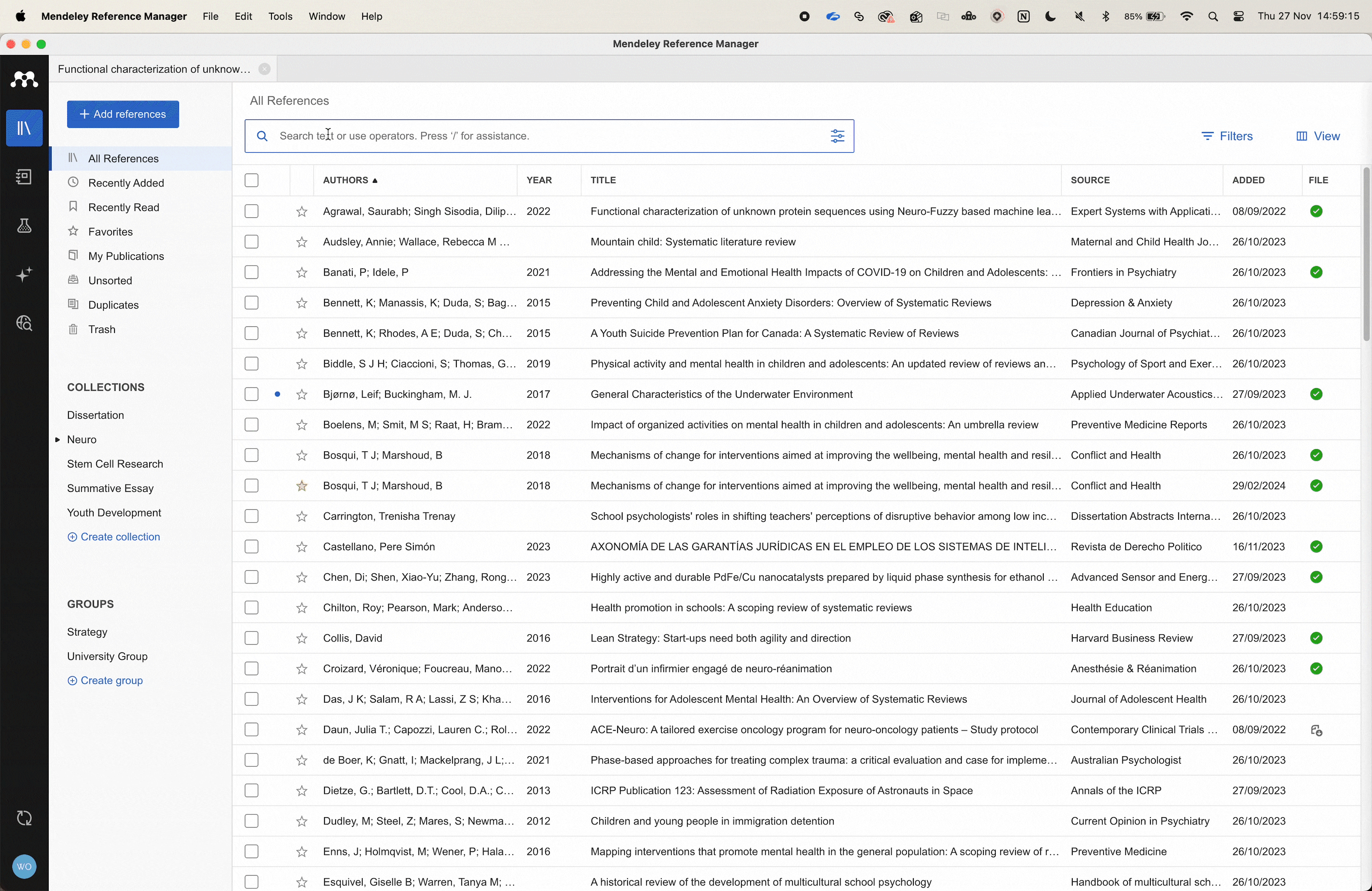 Using search operators can help you refine, expand or exclude results with precision; by combining operators, you can zero in on exactly what you need. Use the following search operators in the Mendeley search bar to build powerful, targeted queries: